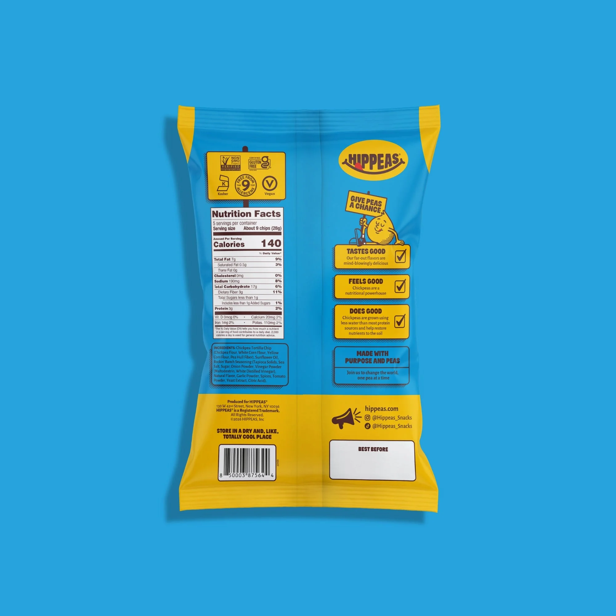 Chickpea Flour, White Corn Flour, Yellow Corn Flour, Pea Hull Fiber, Canola Oil and/or Sunflower Oil, Tapioca Solids, Sea Salt, Cane Sugar, Onion Powder, Vinegar Powder (Maltodextrin, White Distilled Vinegar), Natural Flavor, Garlic Powder, Spices, Tomato Powder, Yeast Extract, Citric Acid
